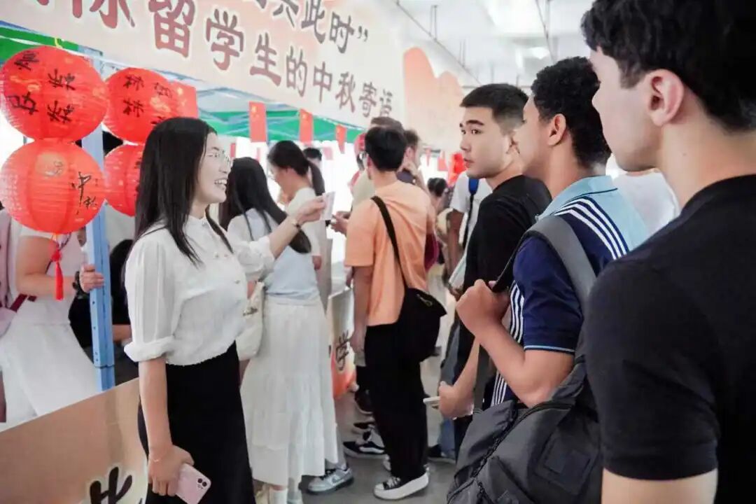 这让外国学子深度参与其中,在笔墨与心意的传递间,真切感受中国中秋节的温情,也让不同语言的祝福成为跨文化交流的温暖纽带。