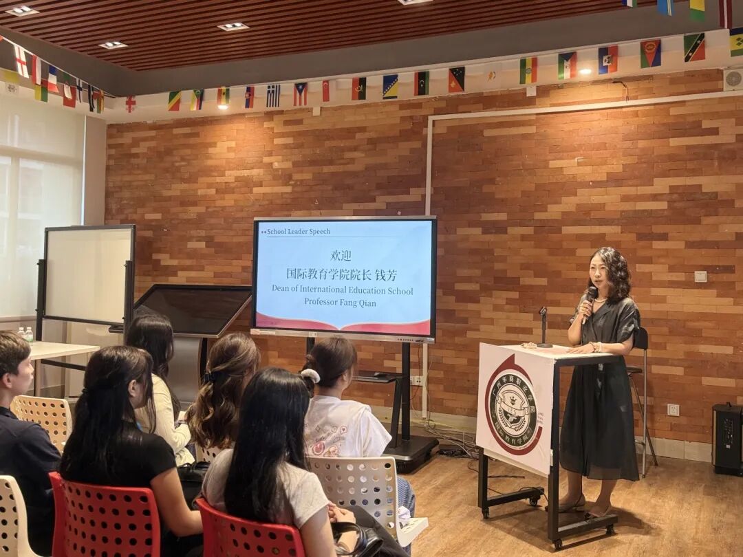 典礼伊始,钱芳院长首先发表致辞。她对全体国际学生的到来表示诚挚欢迎,并指出,国际学生的加入为校园增添了多元文化色彩,是学校推进国际化办学的重要成果。钱院长寄语新生珍惜在华学习机遇,自觉遵守中国法律法规及校规校纪,刻苦钻研中文课程,积极融入校园生活,同时承诺学院将全方位保障学生的学习与生活需求,助力其成长成才,并衷心祝愿每一位学子都能学有所成、收获友谊、成就未来。