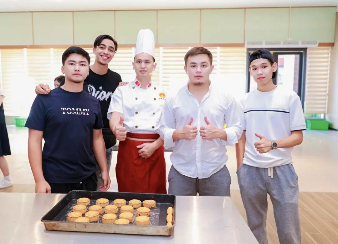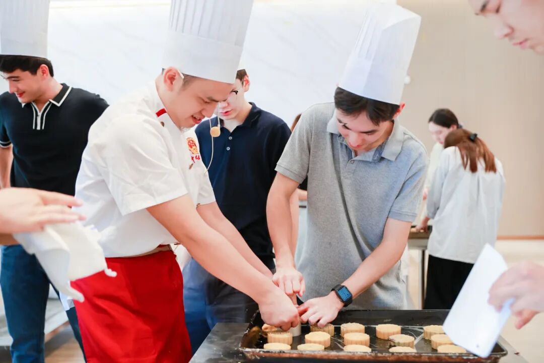 阵阵诱人的甜香扑面而来——大家亲手制作的月饼终于出炉啦!烤盘上,一个个金黄的月饼规整饱满,上面还印着“中秋”、“花好月圆”、“国泰民安”等寓意美好的字样。通过这种“可品尝的文化体验”,让国际学生们在成就感和喜悦感中,更加深化了对中华文化价值的认同与理解。