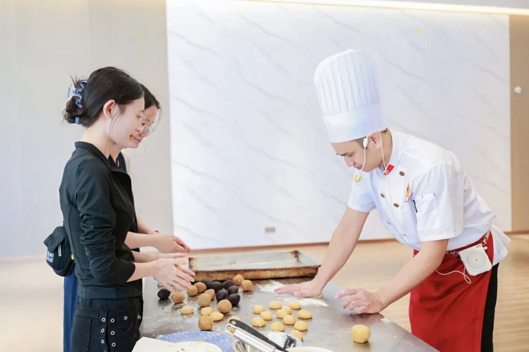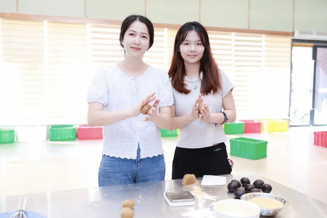 本次活动准备了豆沙和莲蓉两种馅料,范国权老师先为大家现场演示了制作全过程——从如何揉制柔软的面皮,到怎么把香甜的馅料完美包裹进去,再到最后用模具压出精致的花样,每个步骤都讲解得清清楚楚、简单易学。在老师的带领下,大家纷纷动手,揉面皮、包馅料、压模具……每个人都沉浸在手工制作的乐趣中,气氛既热烈又温馨,欢声笑语不断。