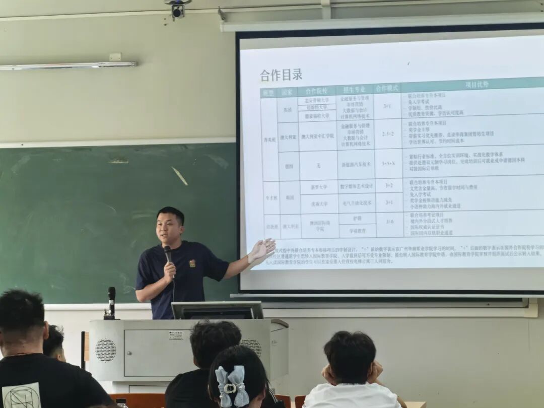 他指出,我院近年来在人才培养方面取得了显著成效,构建了"理论教学+实践训练+创新培养"三位一体的人才培养模式。学院积极推进国际教育教学改革,不断优化专业结构,为学生成长成才创造了良好条件。通过详细介绍学院的境外合作项目,让同学们对学院的资源优势有了更全面的认识。