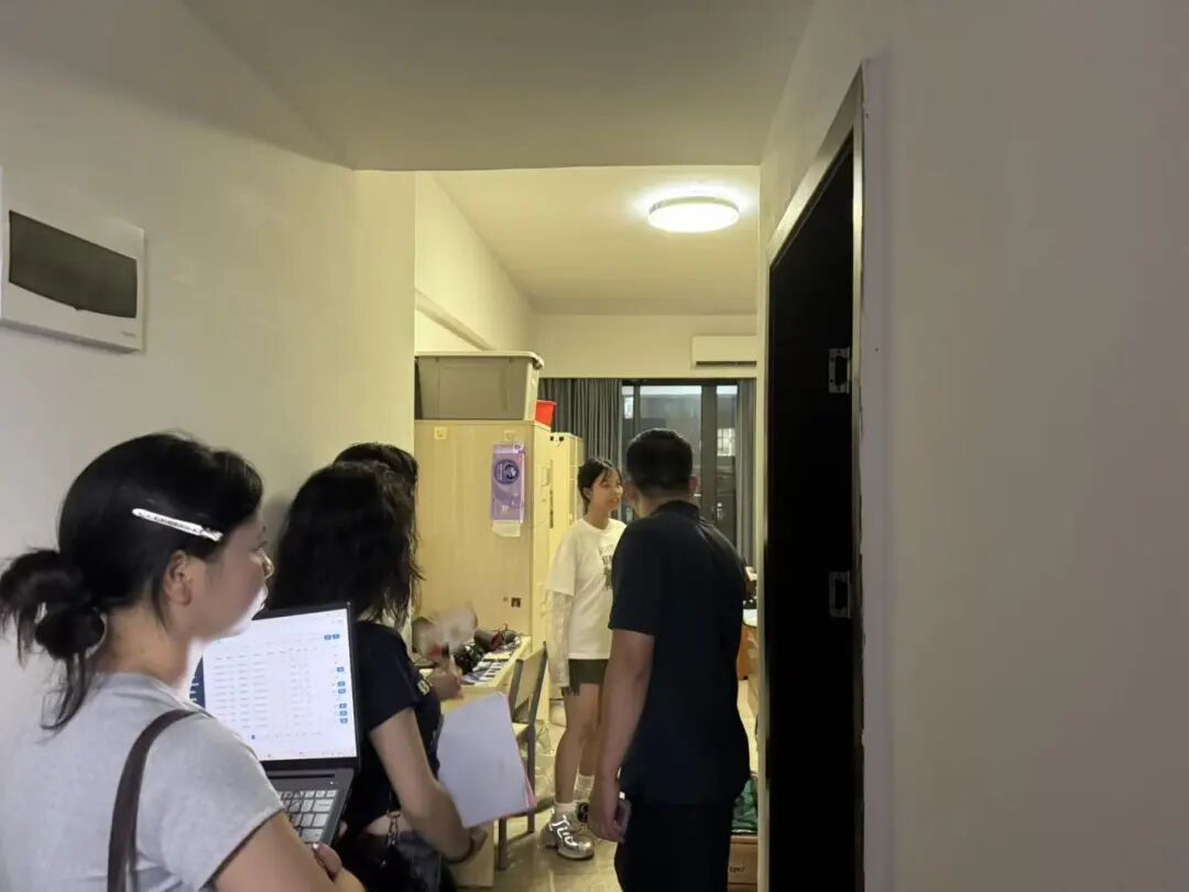 董学乾辅导员和各位班助也到每间宿舍了解情况,同时进行预防诈骗科普讲解和为新生解答疑惑。