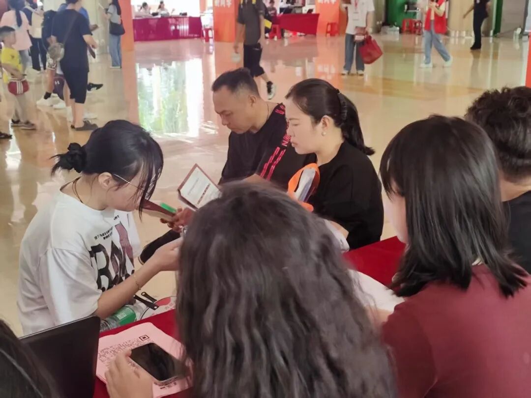 清晨,迎新点上,老师们、党员同志和志愿者们忙碌着。校门口、宿舍楼下、教学楼前,到处是热情的身影。志愿者们举着指示牌,帮新生搬运行李,解答问题。