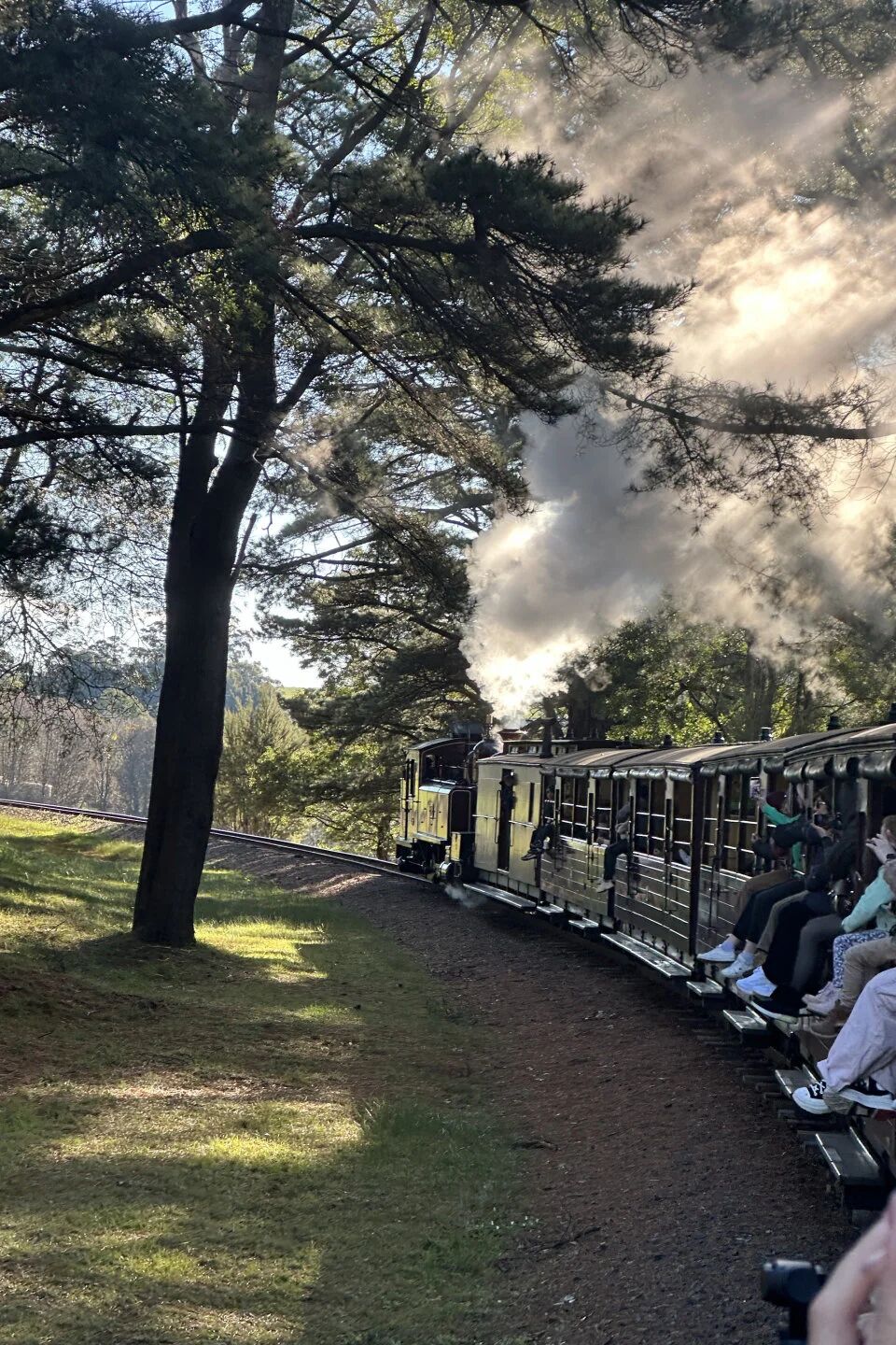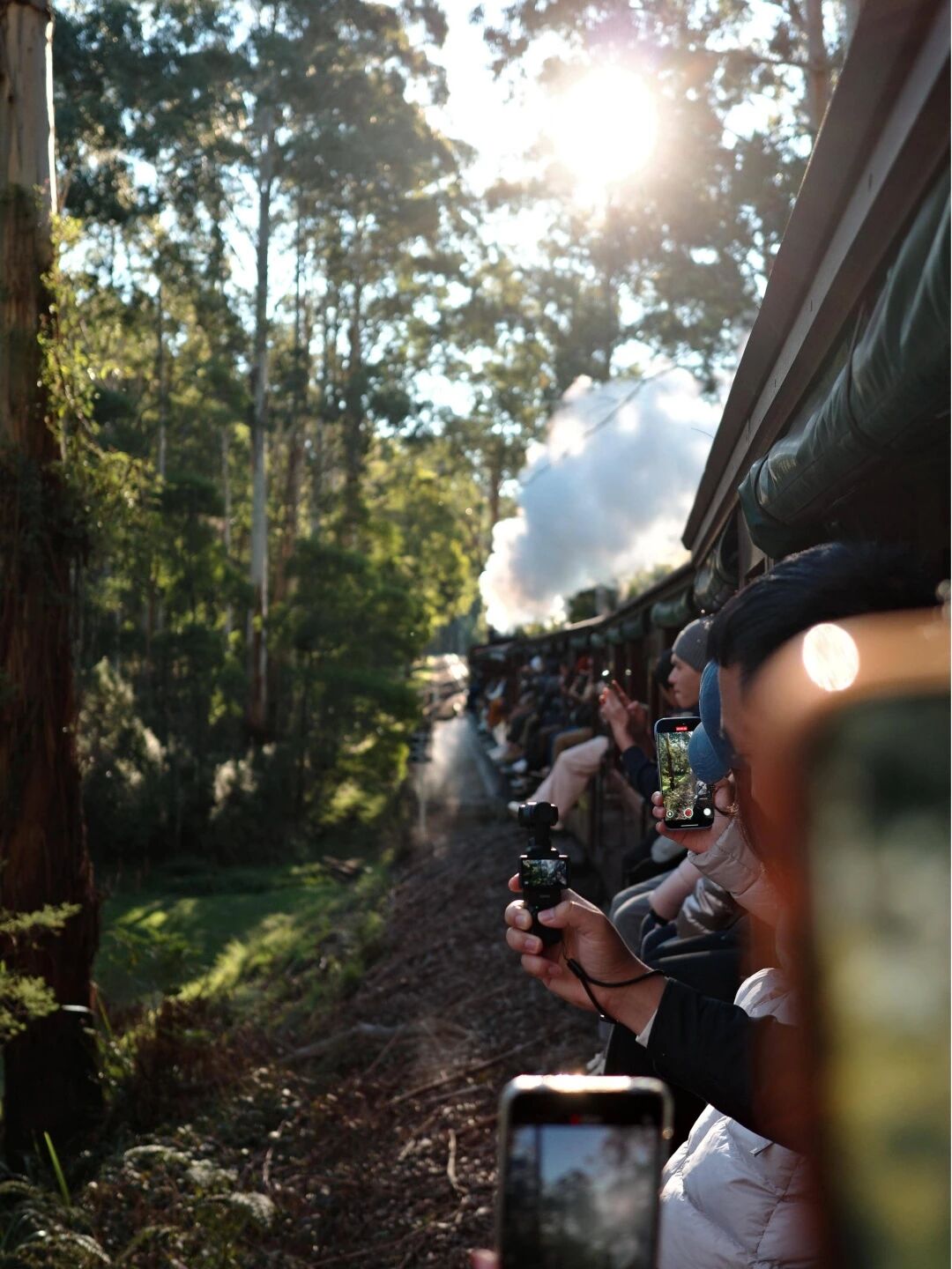 登上历史悠久的普芬比利蒸汽火车,伴随着汽笛轰鸣与煤烟气息穿梭于原始森林,窗外是牛羊点缀的田园风光,斑驳阳光透过桉树林洒落,构成一幅宁静治愈的流动画卷。