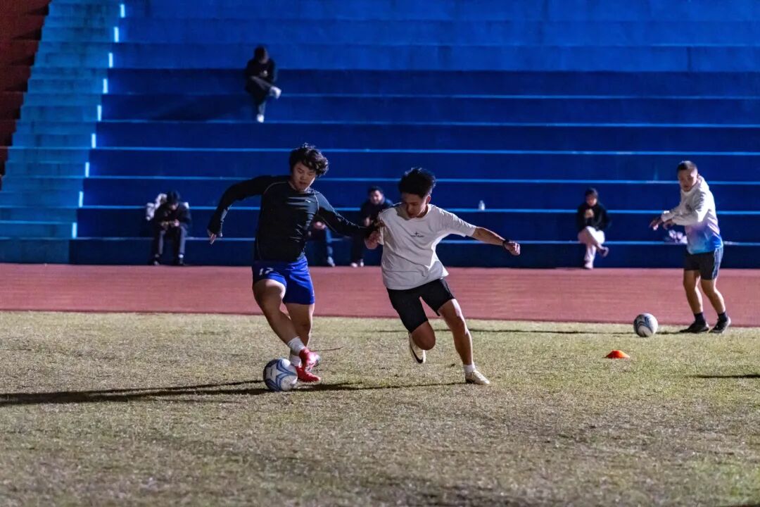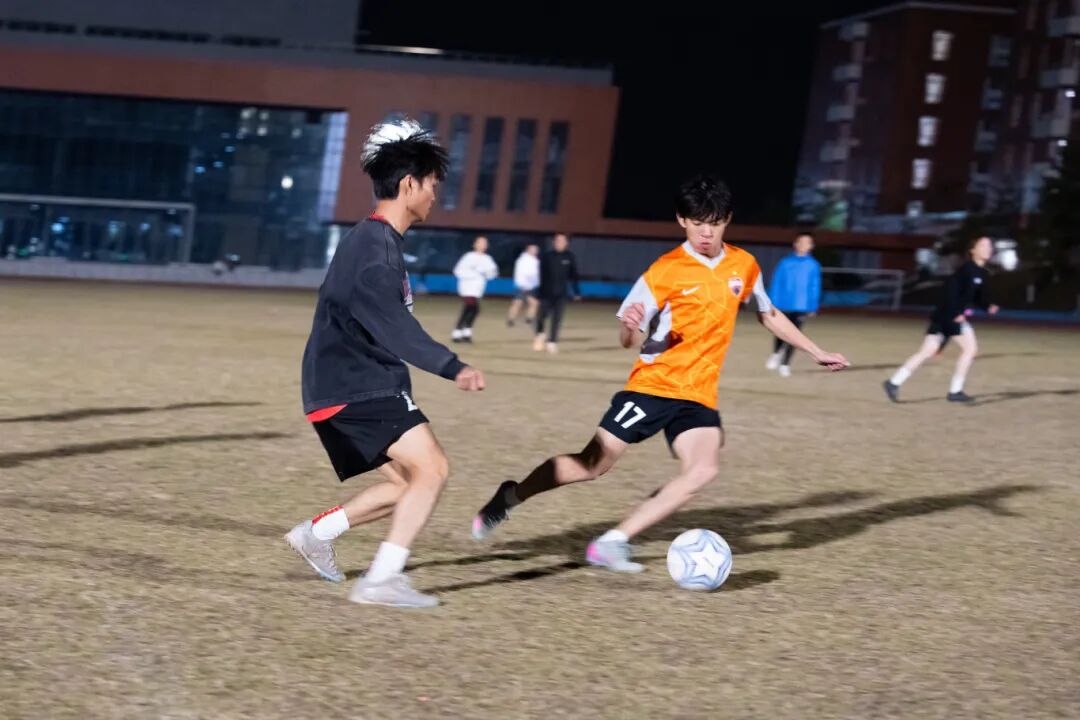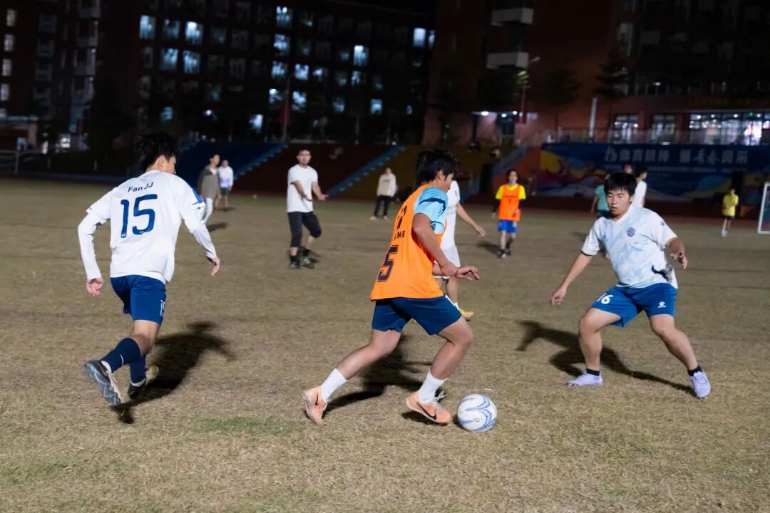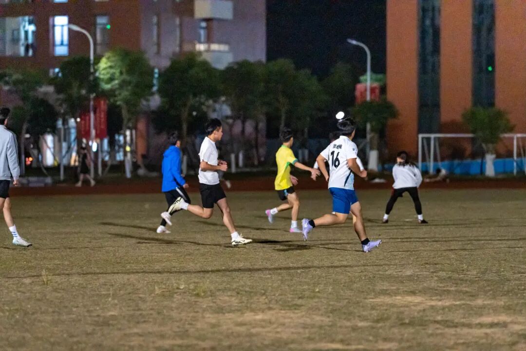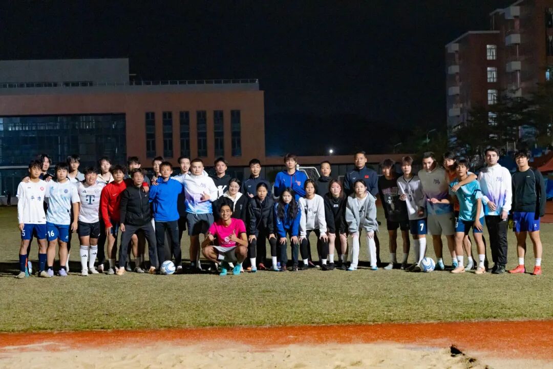 2025年度足球社团交流系列活动之中外师生交流赛在江门校区足球场顺利举行,学校男子足球队、女子足球队、留学生足球队及教职工足球队的30余名足球爱好者齐聚绿茵场。活动以分组轮番对阵的形式展开,师生在切磋球技的同时传递友谊,让赛场成为中外文化交流的桥梁,也让冬夜多了几分温度与活力。