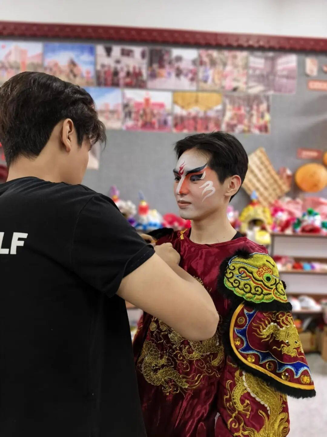 赛场之外,他们是“非遗学徒”。比赛间隙,国际学生们参与了潮汕英歌舞体验活动,亲手绘制脸谱、穿戴传统服饰,沉浸式感受角色背后的文化故事。来自越南的学生段玉庆表示:“穿上英歌舞的服装,我仿佛变成了故事中的英雄,这种文化体验让我对中国有了更深的理解。”