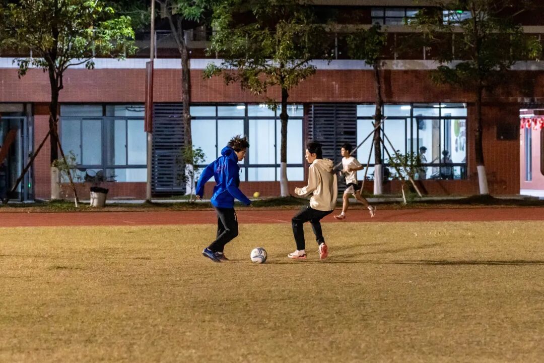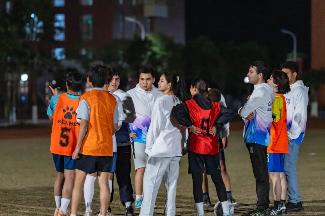 夜幕下,交流赛在欢声笑语中落下帷幕。中外师生们纷纷握手致意、合影留念,定格这段因足球结缘的美好时光。“以球会友、以球促学”的氛围在校园内持续升温。从初次见面时的拘谨,到赛后用中英双语畅聊的融洽,足球让中外师生打破语言壁垒,在运动中加深了解,更激发了彼此学习语言的兴趣。